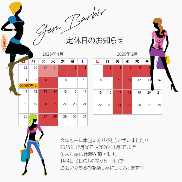 ●「年末年始お休みのお知らせ」2025年12月30日~2026年1月3日までお休みを頂きます。1月4.5日の初売りを楽しみにお待ちしております♡